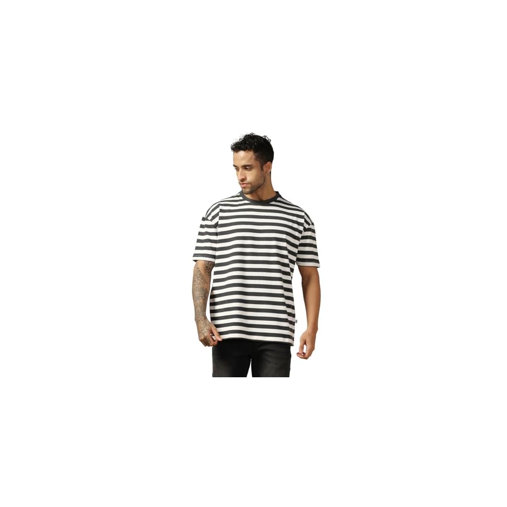 Versatile Oversized Striped Tee: Elevate style with our men’s drop shoulder t shirt . Modern stripes, comfy fit.