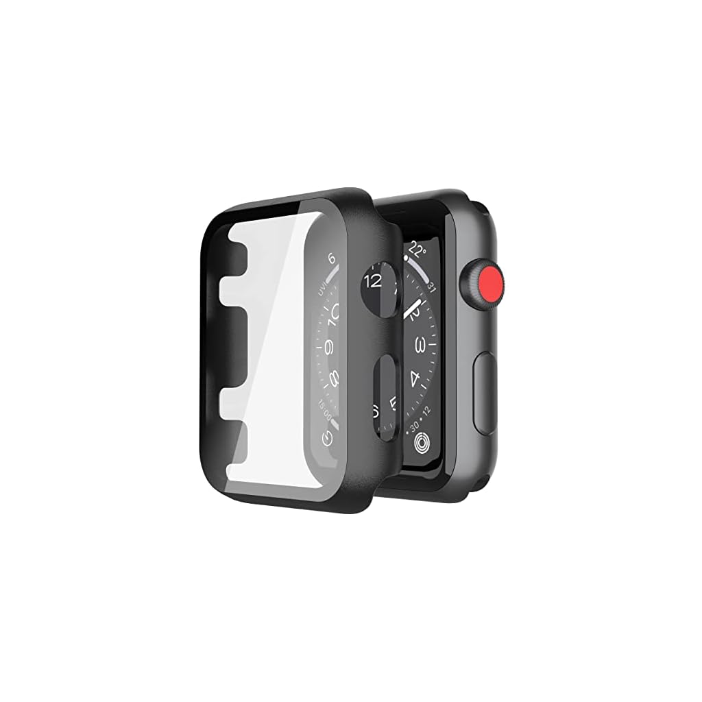 GARHIL [2Pack] Black Hard Case Compatible with Apple Watch Series 3 Series 2, Hard PC Case Slim Tempered Glass Screen Protector Overall Protective Cover for iwatch