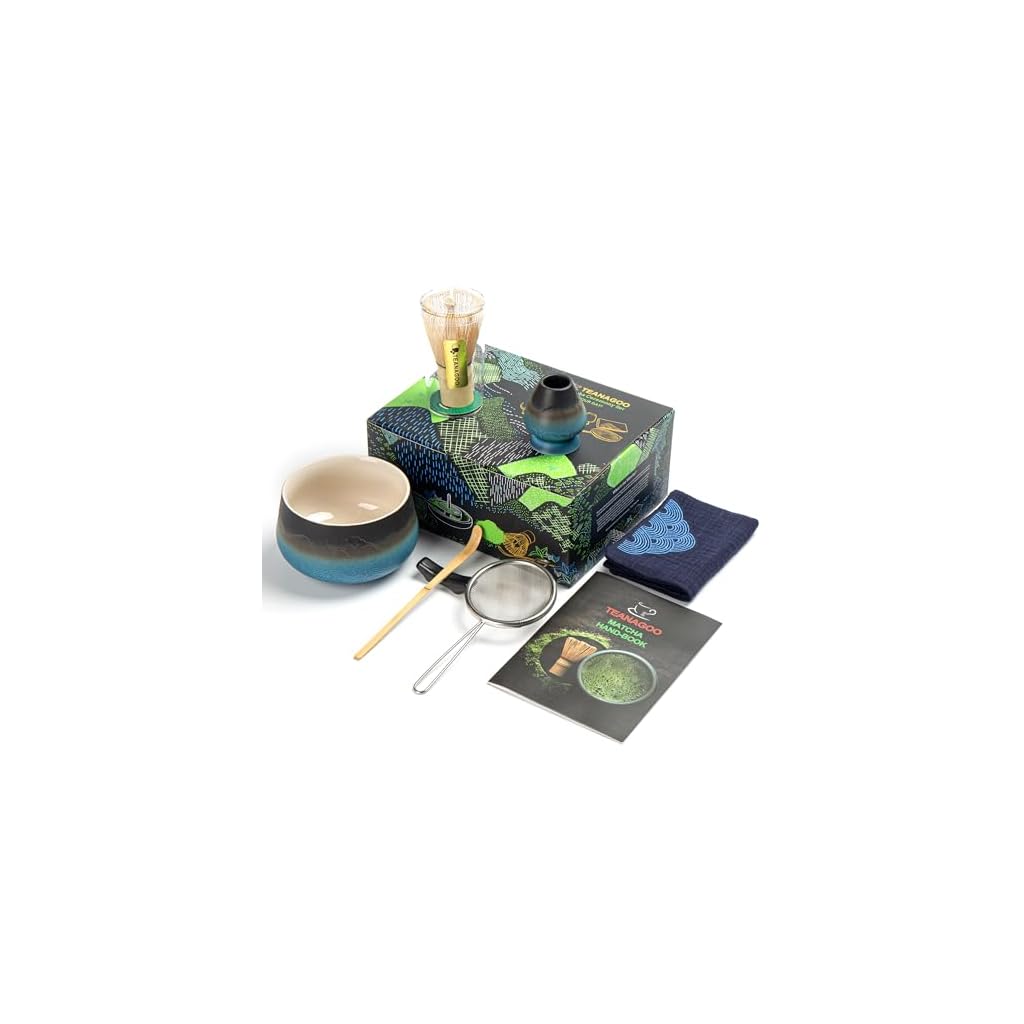 TEANAGOO Japanese Matcha Set (7pcs) Matcha Whisk Mtacha Kit Matcha Bowl with Pouring Spout Bamboo Matcha Whisk (chasen) Scoop (chashaku) Whisk Holder. N23, Gradient Navy, Matcha Green Tea Powder