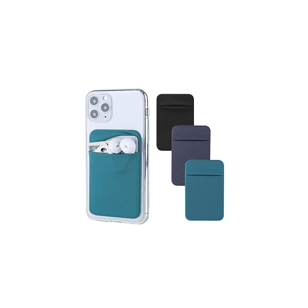 3 Pack Phone Card Holder Stretchy Lycra Stick on Wallet Pocket Credit Card ID Case Pouch Sleeve 3M Adhesive Sticker for Back of iPhone Samsung Galaxy Android Smartphones-Dark Green/Blue Gray/Black