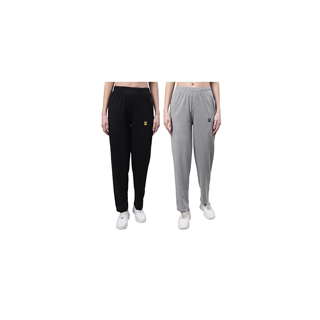 VIMAL JONNEY Regular fit Cotton Trackpant for Women (Pack of 2)-D10_BLK_MLG_002-P