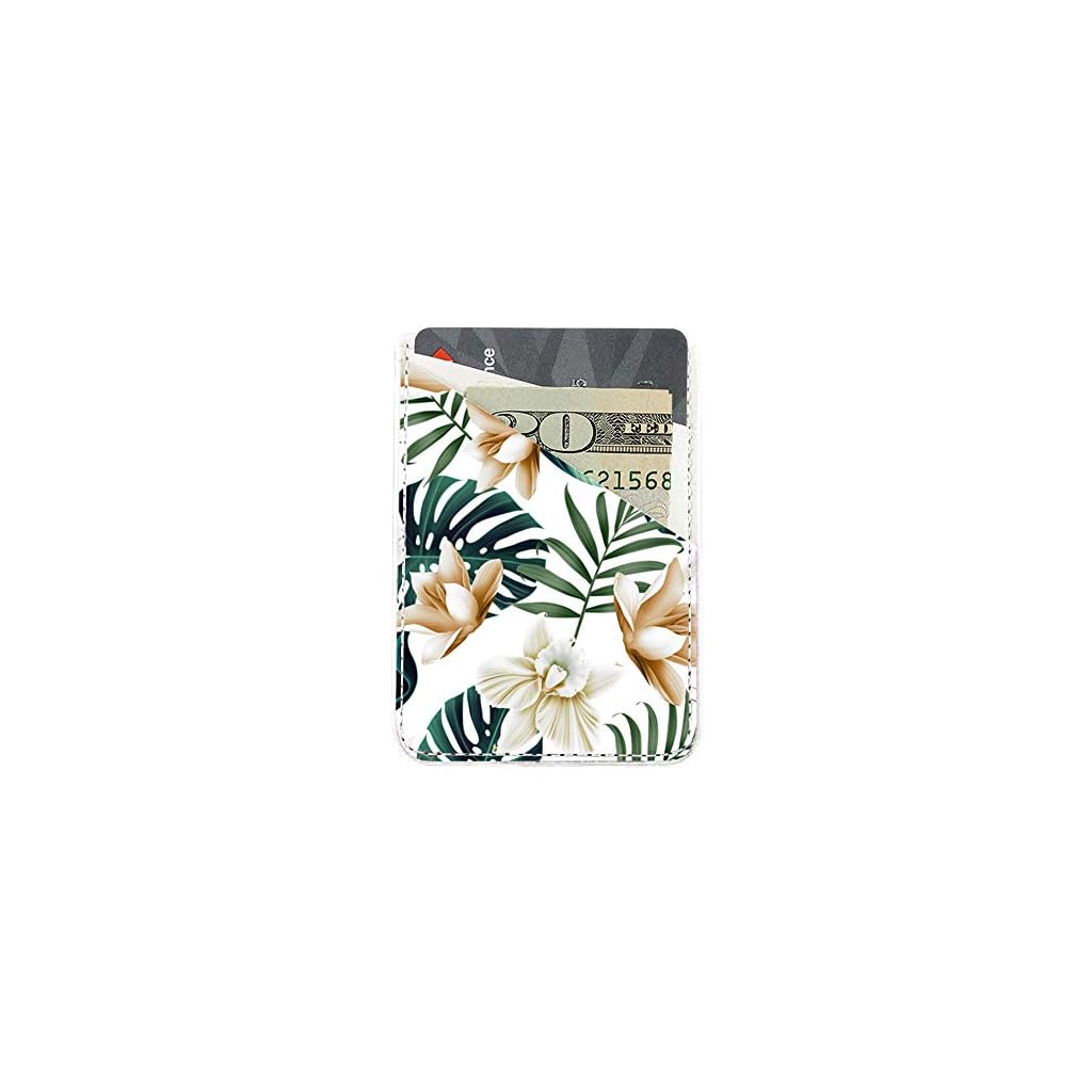 Palm Tree Leaf Flowers Adhesive Cell Phone Credit Card Stick On Wallet Holder Phone Pocket Pouch Sleeves for iPhone,Samsung Android and All Smartphones