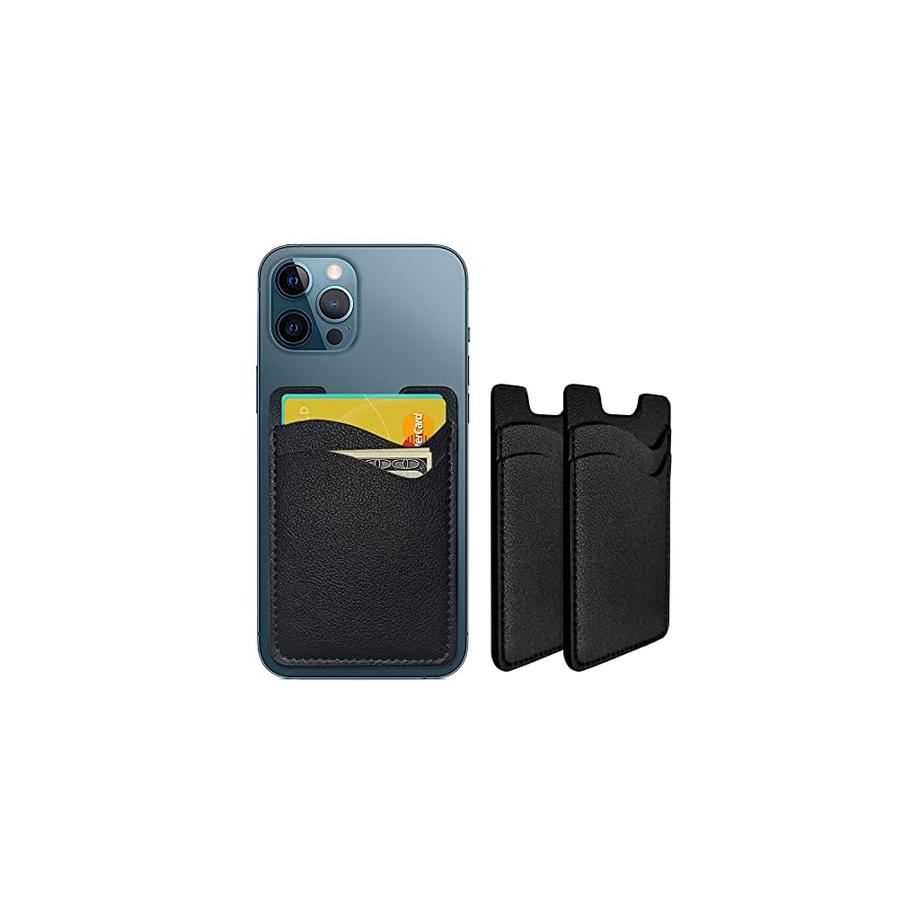 Phone Card Holder, Leather Phone Wallet Stick On, Stretchy Card Holder for Back of Phone Credit Card Holder for Phone Case Compatible with Most of Cell Phone (iPhone, Samsung) – 2Pack Black