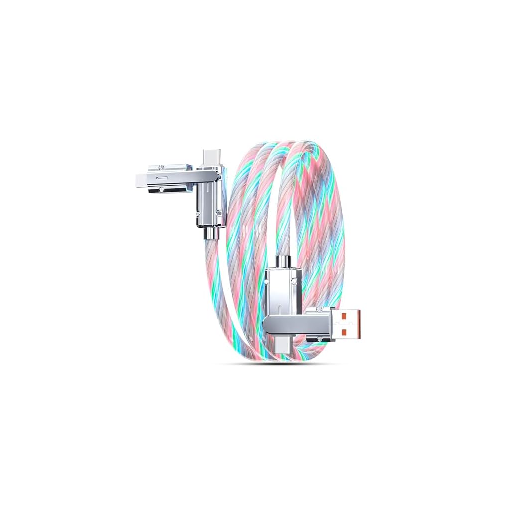 TecoKart® Multi Charger Cable Fast Charging, Flowing Light 4 in 1 Fast Charging and Data Cable, White USB Cable Compatible with iPhones, iPads, Android Devices, Tablets (1M)