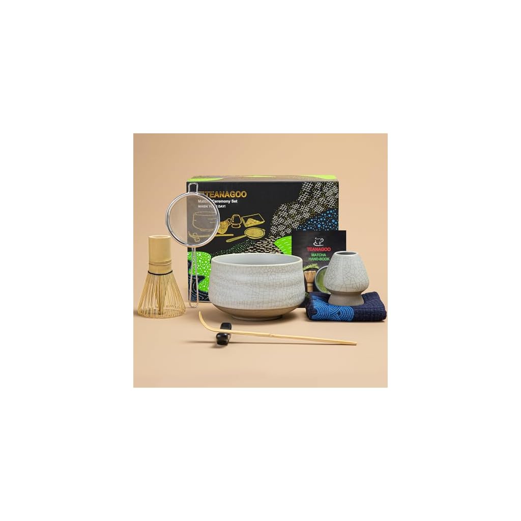 TEANAGOO Matcha Tea Set, Japanese Tea Set, Matcha Bowl, Matcha Bamboo Whisk, Scoop, Sifter, Matcha Whisk Holder, Matcha whisk stand, Matcha whisk set N15,Matcha Green Tea Powder Kit. Matcha Tea Kit…