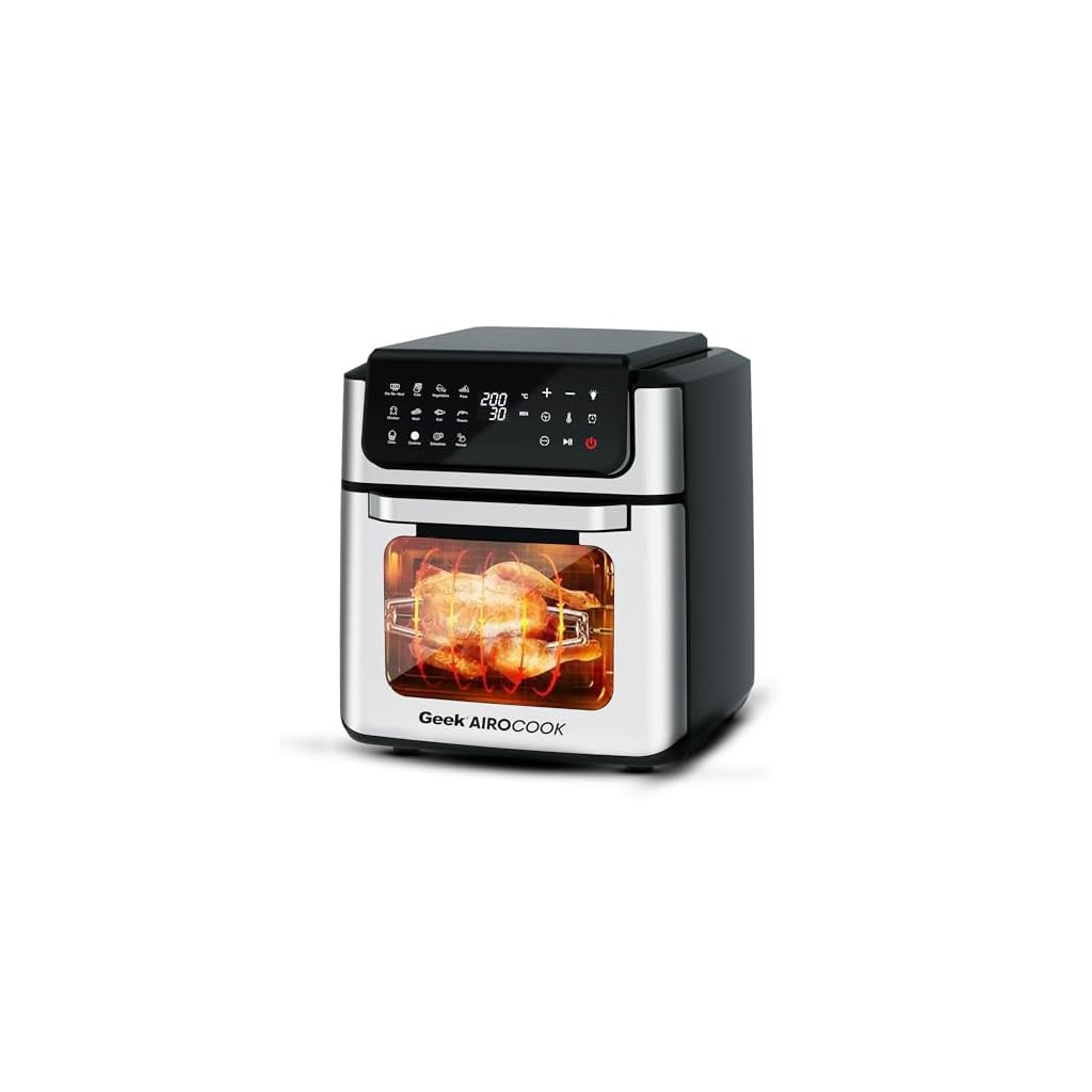 Original price was: ₹6,952.00.₹2,774.00Current price is: ₹2,774.00.Geek AiroCook Helix 12 Litres Air fryer, 12 Preset Menus, 8-in-1 Digital Touch Oven with Airfry, Bake, Rotisserie, Grill, Toast, Broil, Dehydrate & Keep warm, Recipe Book (1700W) (Grey)