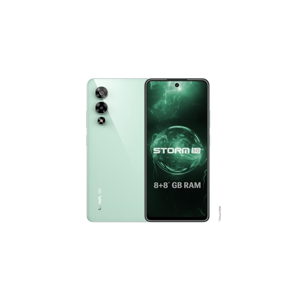 Lava Storm 5G(Gale Green,8GB RAM,128GB ROM)-Powered by MediaTek Dimensity 6080 Processor|120Hz FHD+ Display|50MP+8MP Ultrawide Camera|16MP FrontCamera|33W Fast Charging|Upto 16GB ExpandableRAM