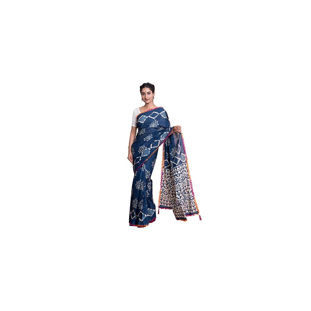 Original price was: ₹1,999.00.₹1,196.00Current price is: ₹1,196.00.Kishori Women’s Dabu Motif Print Cotton Mulmul Saree and Blouse Fabric (Indigo Blue)