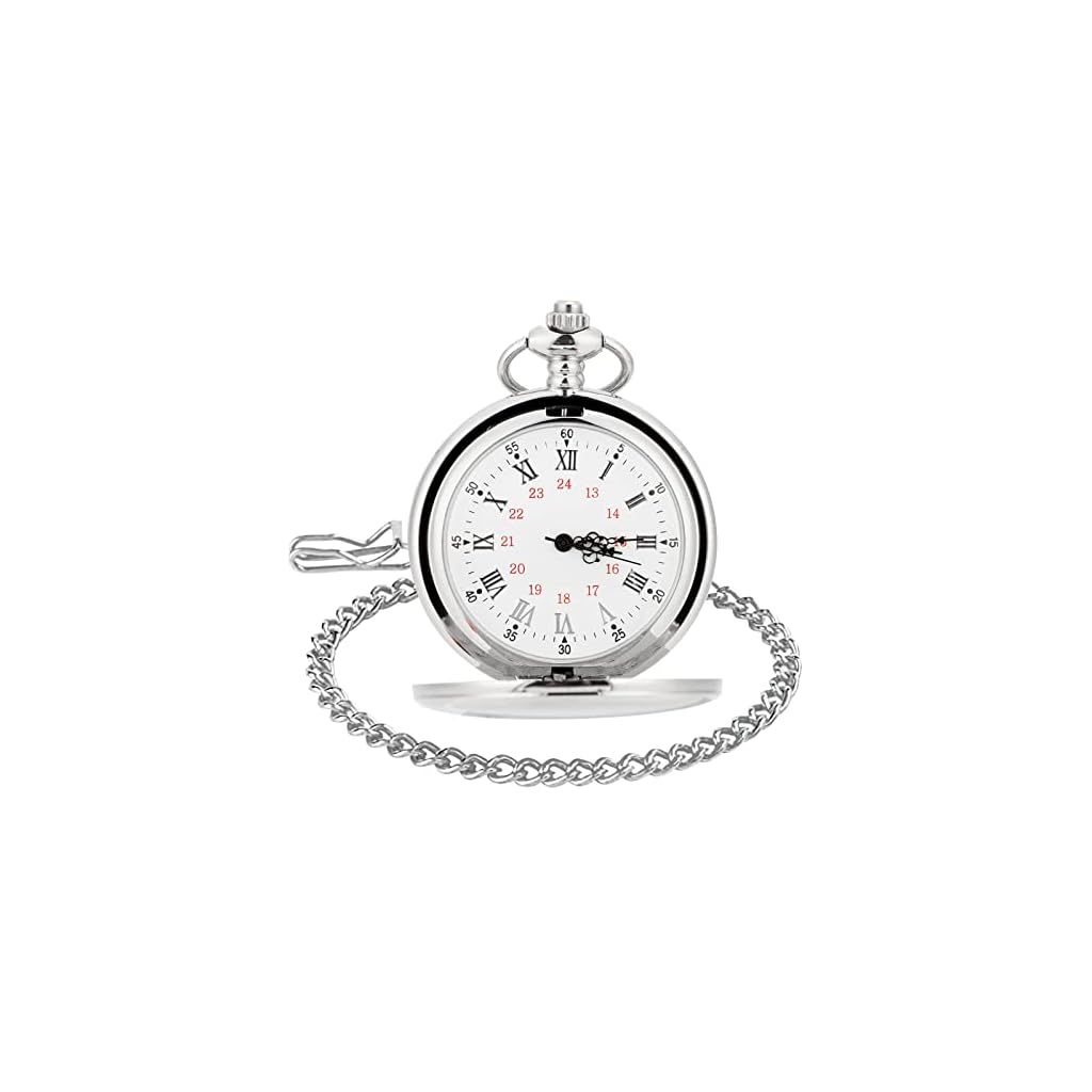 Original price was: ₹5,639.00.₹3,948.00Current price is: ₹3,948.00.WIOR Classic Smooth Vintage Pocket Watch Sliver Steel Mens Watch with 14 in Chain for Xmas Fathers Day Gift (White)