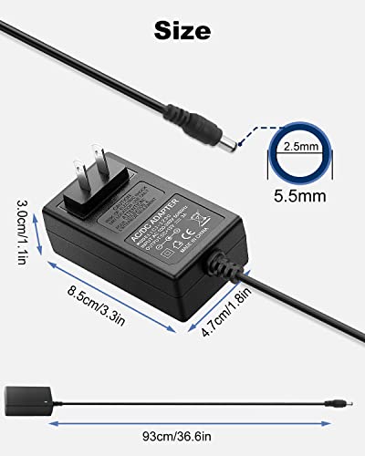 12V DC Power Adapter Supply 3A 12 Volt AC Adapters Wall Plug 110V in to 12V DC Power Cord 3Amp Switching Transformer with 5.5mmx2.5mm DC Outlet Tip & 10 DC Plugs, DC12V