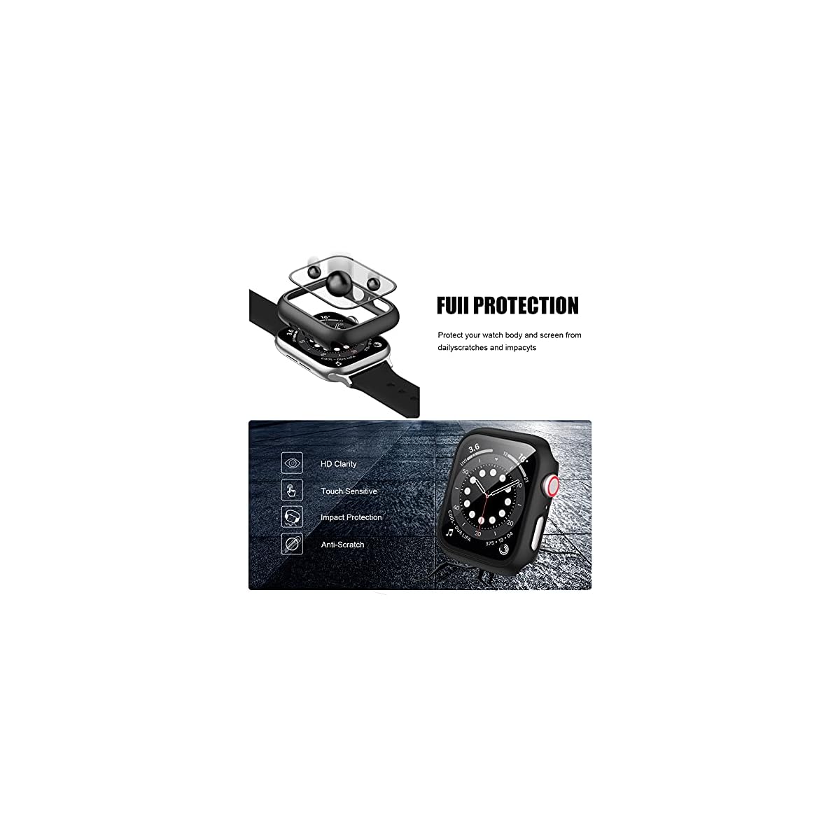 2 In 1 Design: Durable PC case built in slim HD clear tempered glass screen protector, all Around protects your Apple Watch from scratch, bumps and accidental drops. Super easy to install for its snap-on design, and charge directly.
