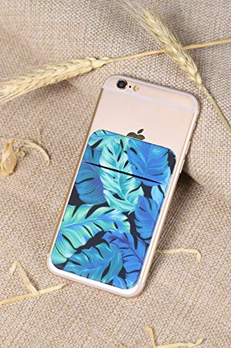 2Pack Adhesive Phone Pocket,Cell Phone Stick On Card Wallet Sleeve,Credit Cards/ID Card Holder(Double Secure) with 3M Sticker for Back of iPhone,Android and All Smartphones (Rose Floral&Palm Leave)