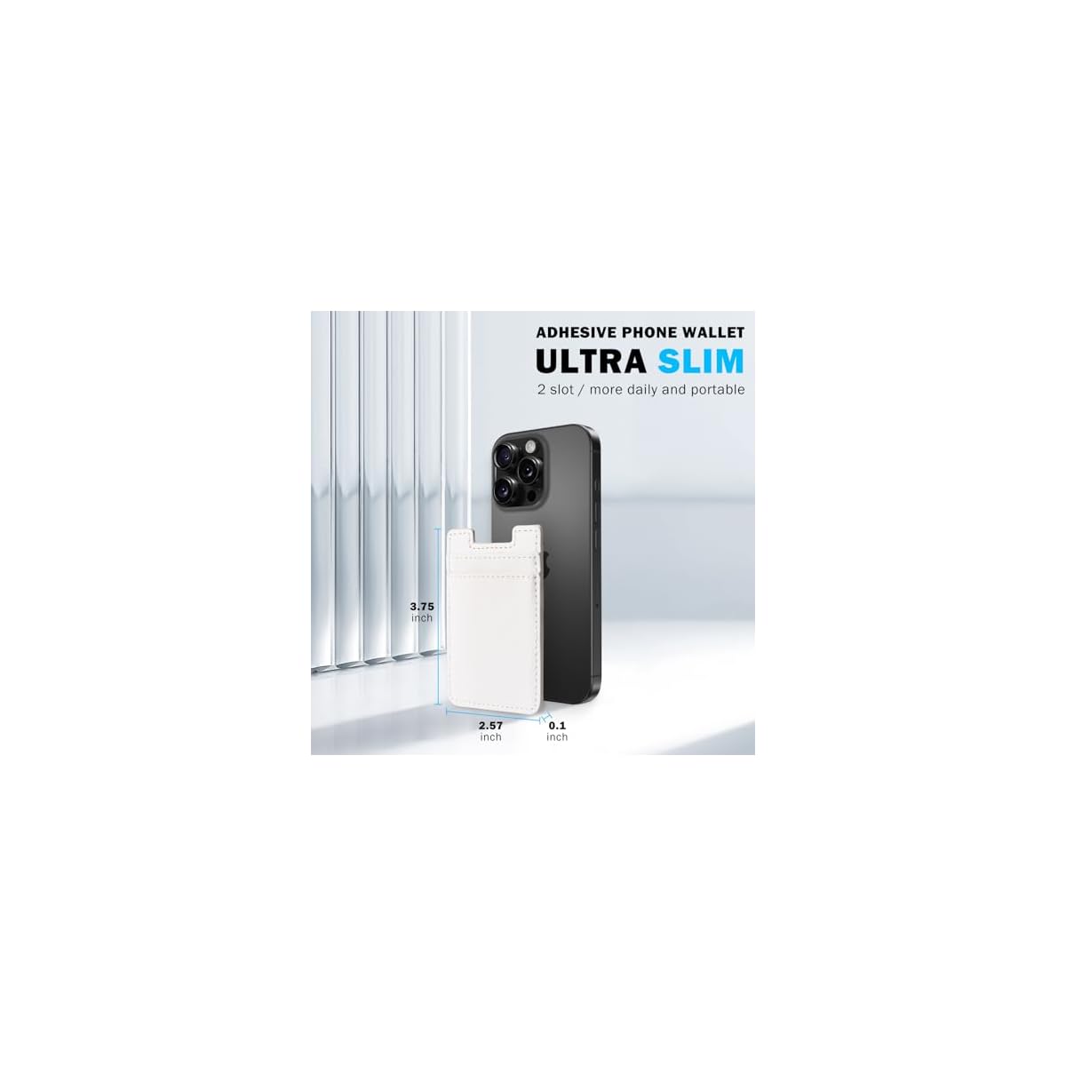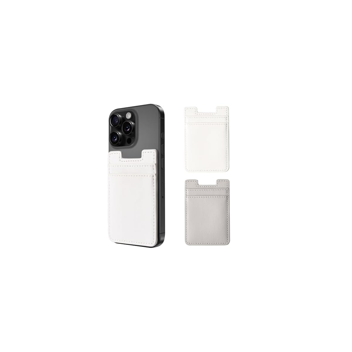 2Pack Phone Wallet,Leather Phone Card Holder Adhesive Stick On Credit Card Pocket for Back of Phone Case iPhone and Android-White,Grey