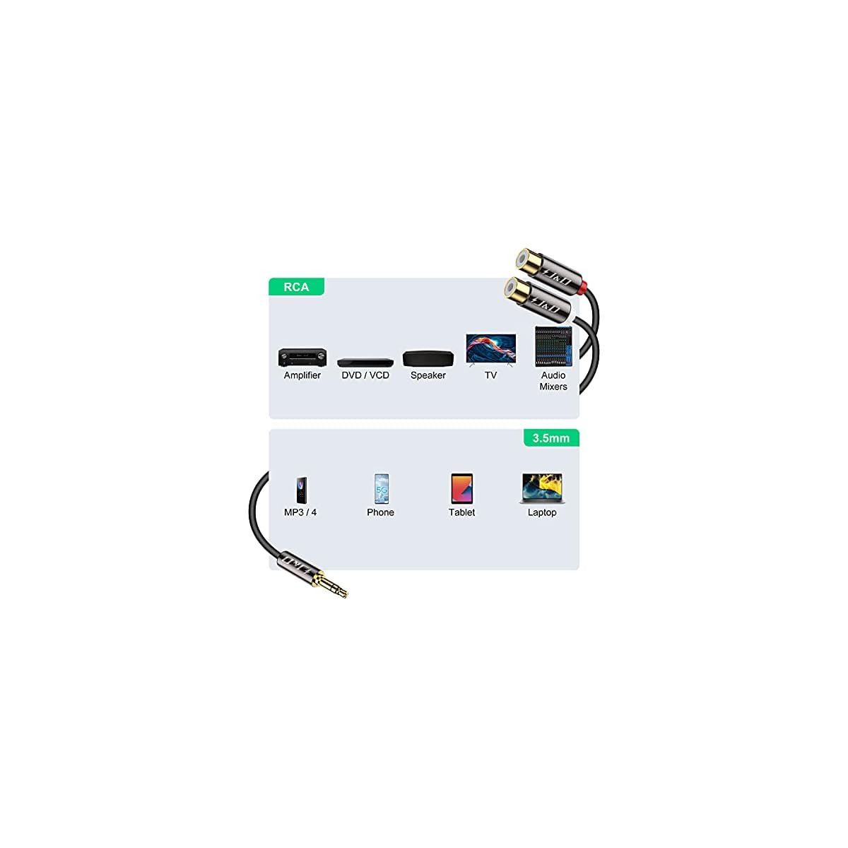 3.5 mm to 2RCA Cable, J&D Gold-Plated [Copper Shell] [Heavy Duty] 3.5mm Male to 2 RCA Female Stereo Audio Adapter Extension Cable – 3 Feet
