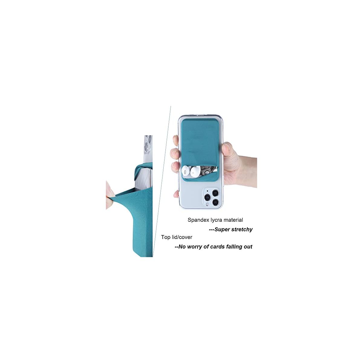 Highly elastic&Put more-This cell phone card holder is made of stretchy fabric with self adhesive sticker,which holds the content of the pocket from falling,even when the phone pocket is upside down.Touch much soft than silicone and leather card holder.Suitable for back of phone or phone case.The pocket is suitable for credit cards or ID cards.Small but very handy&functional for mobile phone.