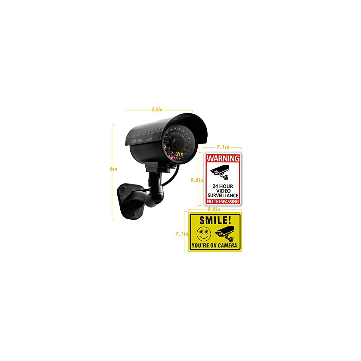 High-quality material: The fake camera is made of ABS plastic, which is not only high in toughness and strength, but also proven to be a high-quality material for recycling. The security camera warning signs are made of thick aluminum and durable metal that are hard to bend. If you have a security camera system, this can be a should, because it can protect your body and the law. In addition, it can also be used as a bluff to frighten thieves.