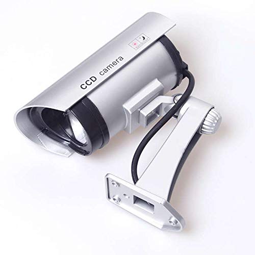 AASTIK Security Camera Fake Dummy Camera with Realistic Bullet CCD Design Blinking LED Light, for Outdoor or Indoor Use Ideal for Commercial Business Security or Residential Silver(1PIC)