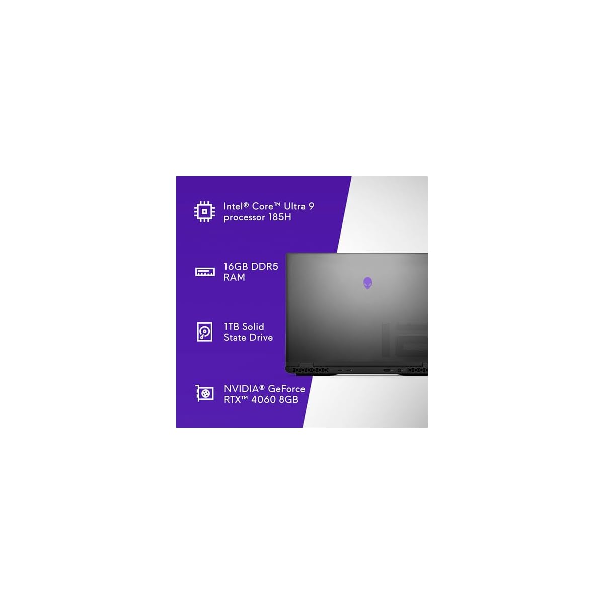 Alienware m16 R2 Gaming Laptop, AI Enabled Processor Intel Core Ultra 9 185H, 16GB, 1TB SSD, NVIDIA RTX 4060, 8 GB GDDR6, 16″ (40.6cm) QHD+ 240Hz, AlienFX RGB Backlit KB, Dark Metallic Moon, 2.61kg