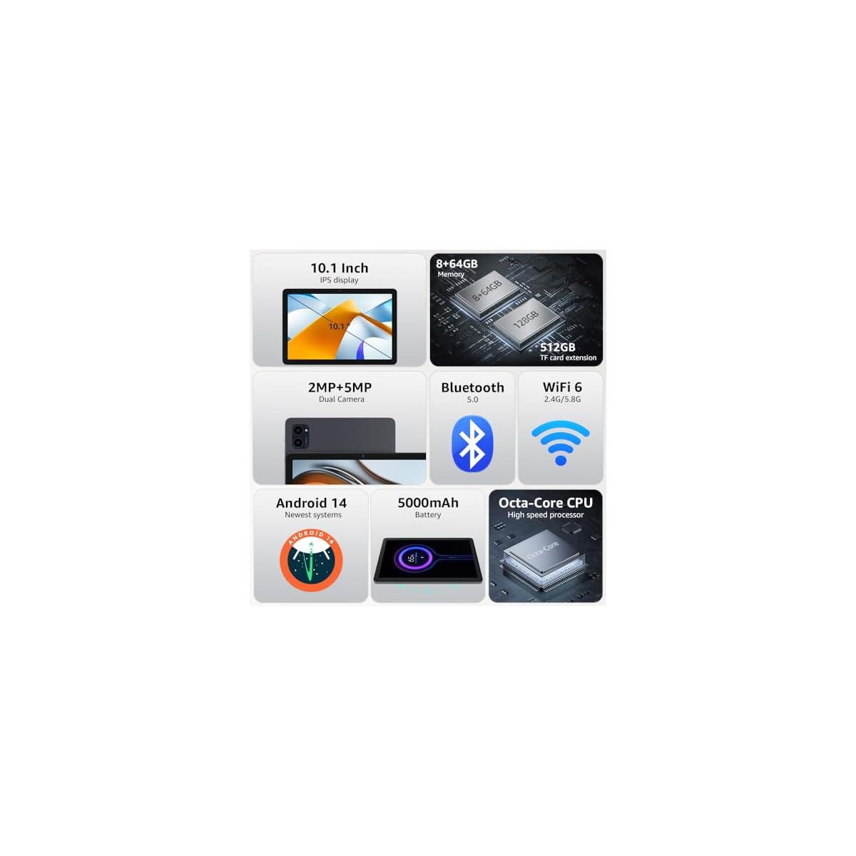 ApoloSign Android 13 Tablet, 10.1″ HD Tablet with Octa-core Processor, 8 (4+4GB) RAM + 64GB ROM + 128GB Expansion, Touch Screen PC, Long Battery Life