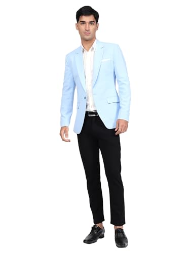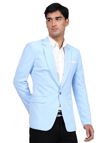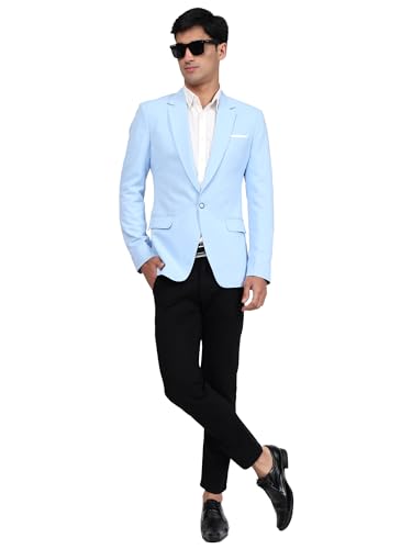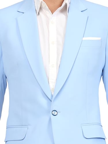 AREEB Stylish Men’s Sky Blue Slim Fit Single-Breasted Blazer: Elevate Your Look with a Tailored Fit | for Formal & Casual Sophistication