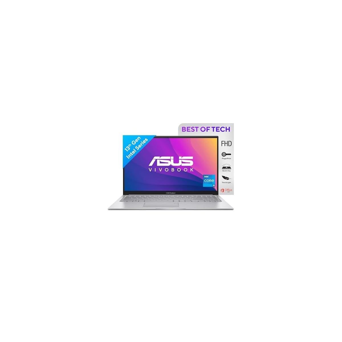 ASUS Vivobook 15 (2023), Intel Core i5-1335U 13th Gen, 15.6″ (39.62 cms) FHD, Thin and Light Laptop (8GB RAM /512GB SSD/Intel Iris Xᵉ/Windows 11/Office 2021/Fingerprint/Silver/1.7 kg), X1504VA-NJ524WS