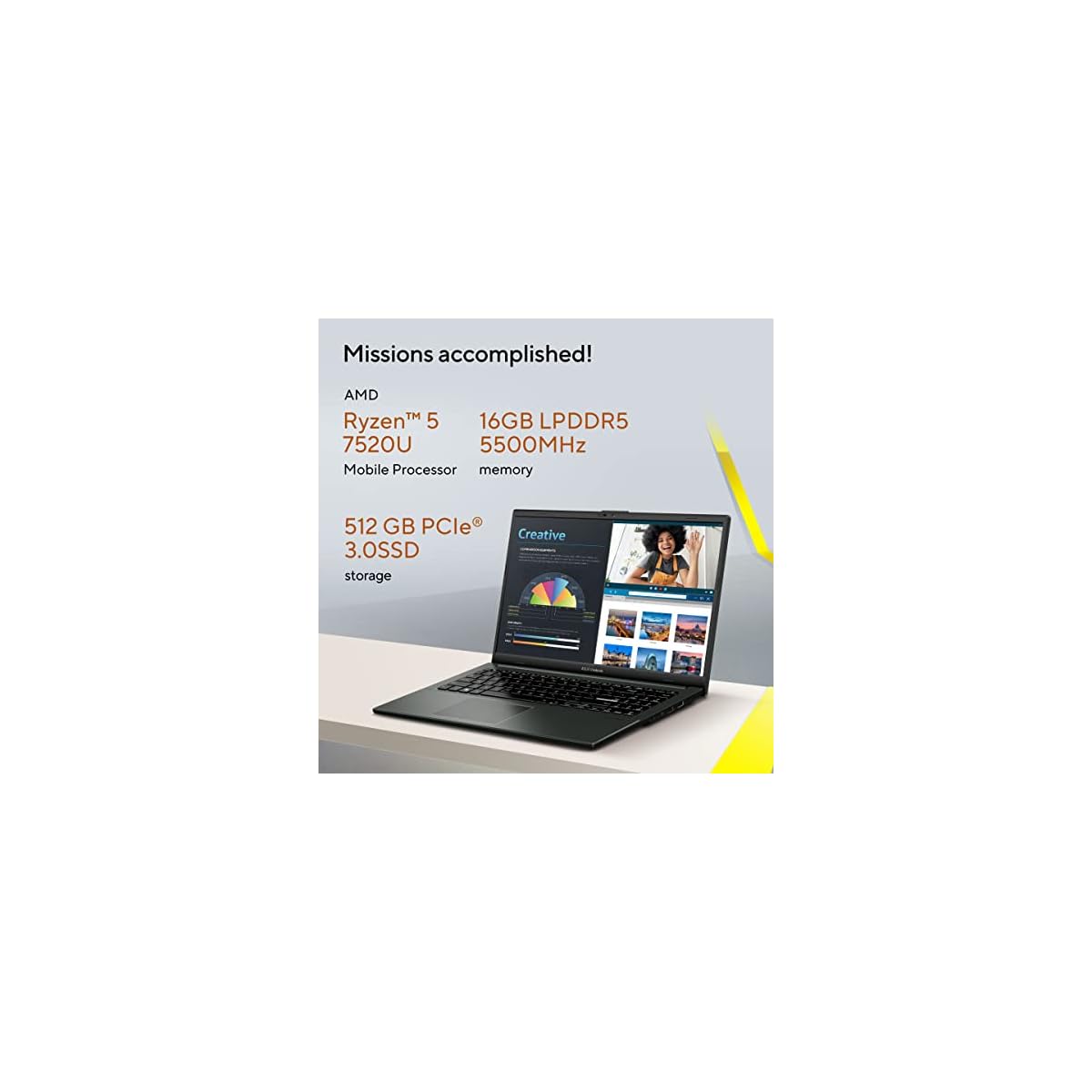 Processor: AMD Ryzen 5 7520U Mobile Processor (4-core/8-thread, 4MB cache, up to 4.3 GHz max boost)