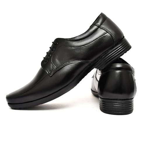 B R SHOES Men’s Black Genuine Leather (NDM Leather) Handmade Derby Lace-Up Formal Shoes