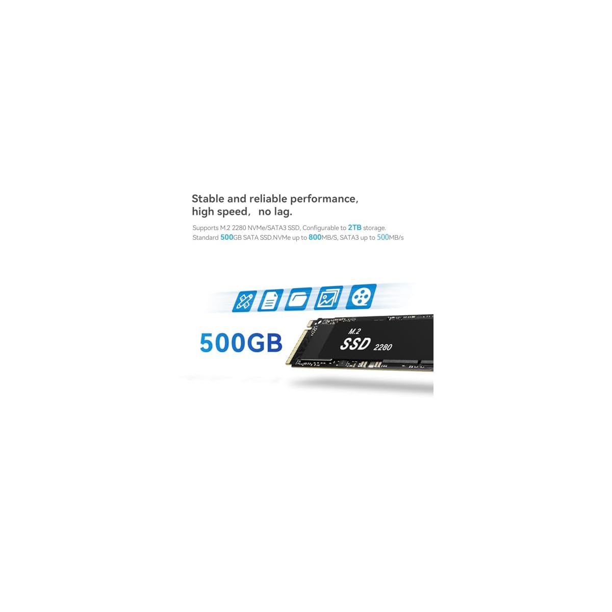 ✅【Strong Storage Expansion & Upgraded Fan】The Beelink Mini Desktop computer has built-in 16GB DDR4, 500GB SATA3 SSD (Support up to 2TB of 2.5-inch NVMe/SATA3 SSD 2280, not included), more storage space which will make the device run more smoothly and solve the problem of pc lag. The Mini PC supports a large silent CPU fan, a copper heat sink and a dedicated SSD cooling shield, heat dissipation performance is improved by 40%, makes the computer’s response speed faster.