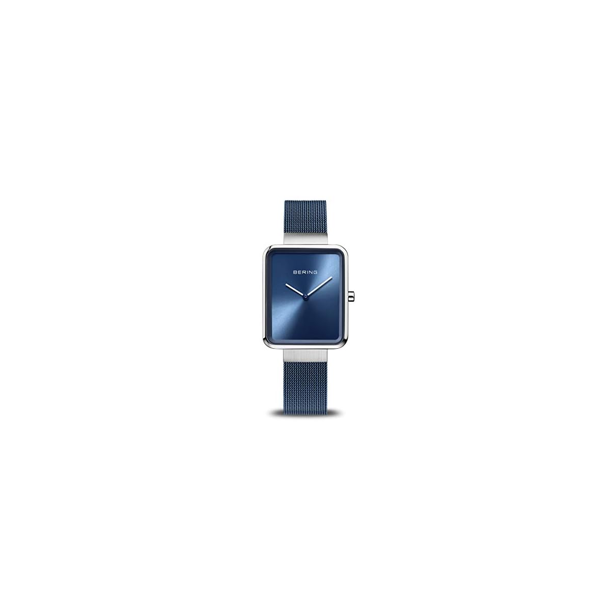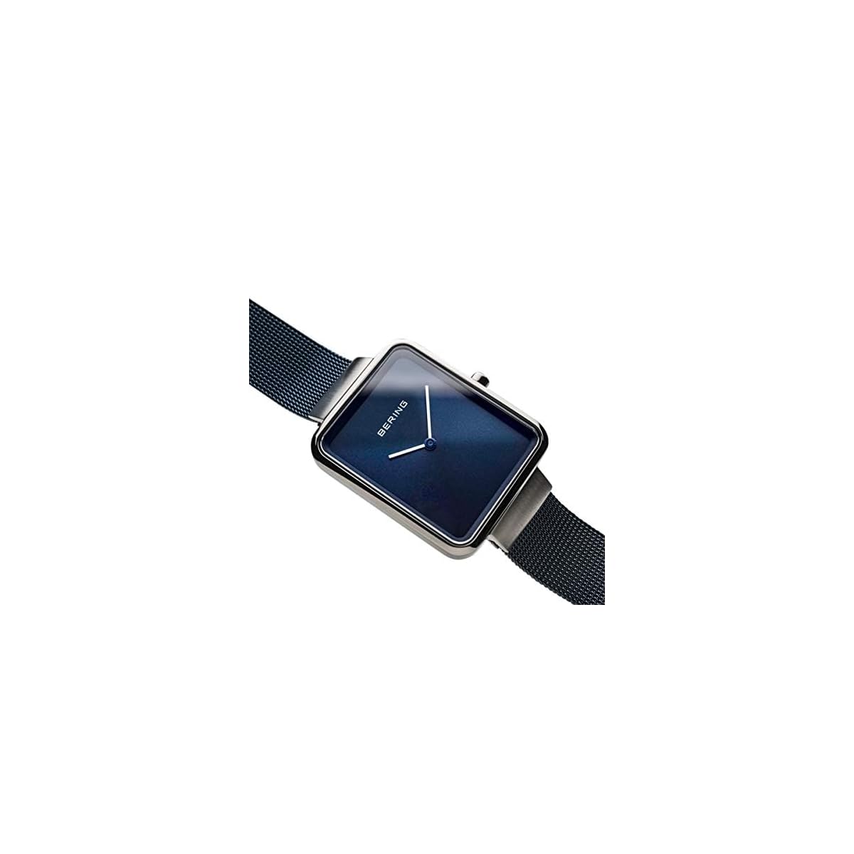 The minimalistic BERING watch has a highly scratch-resistant and flat sapphire crystal with a blue Sunray dial