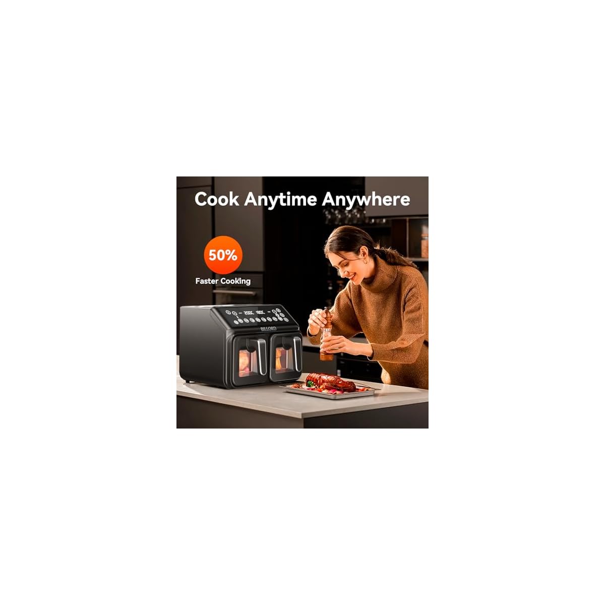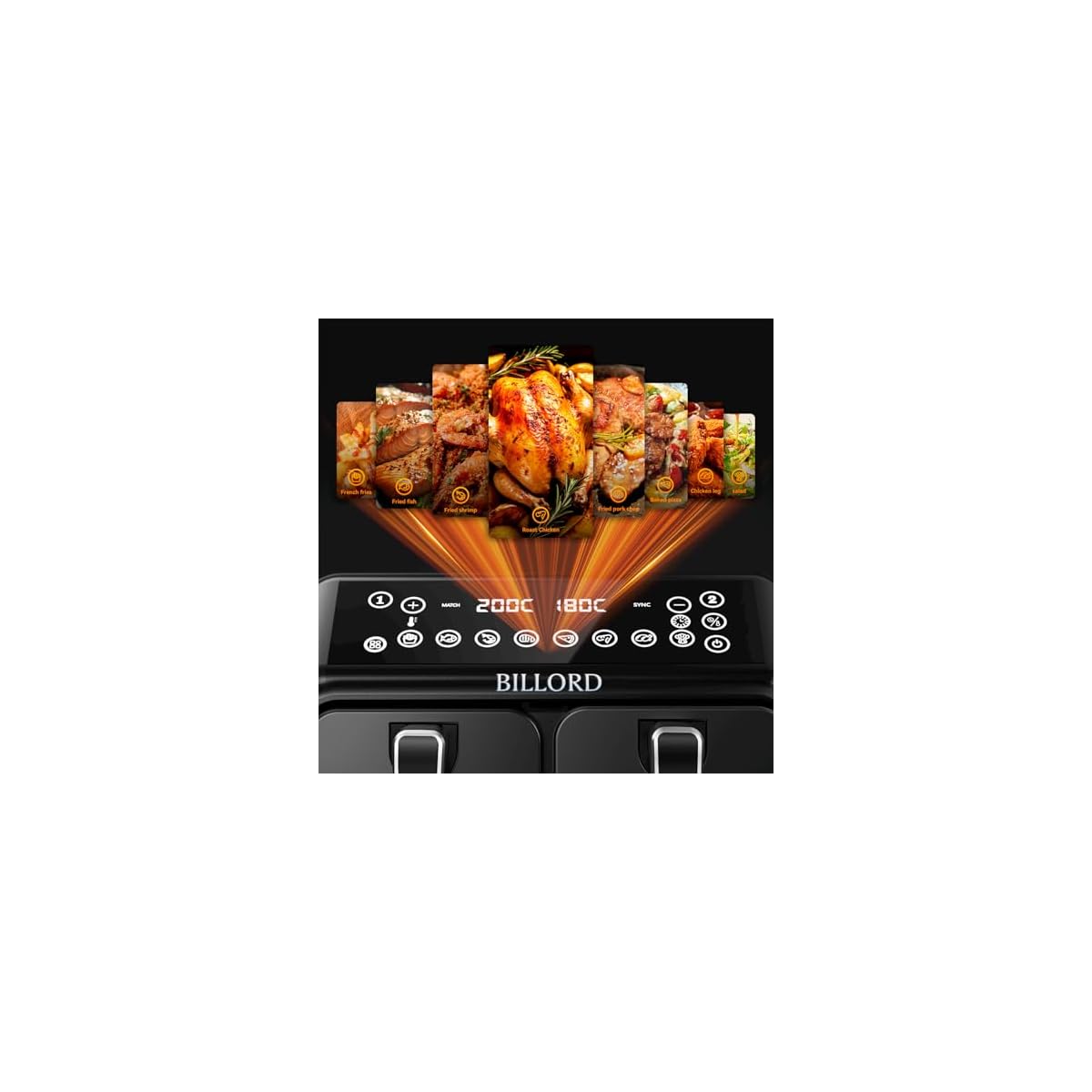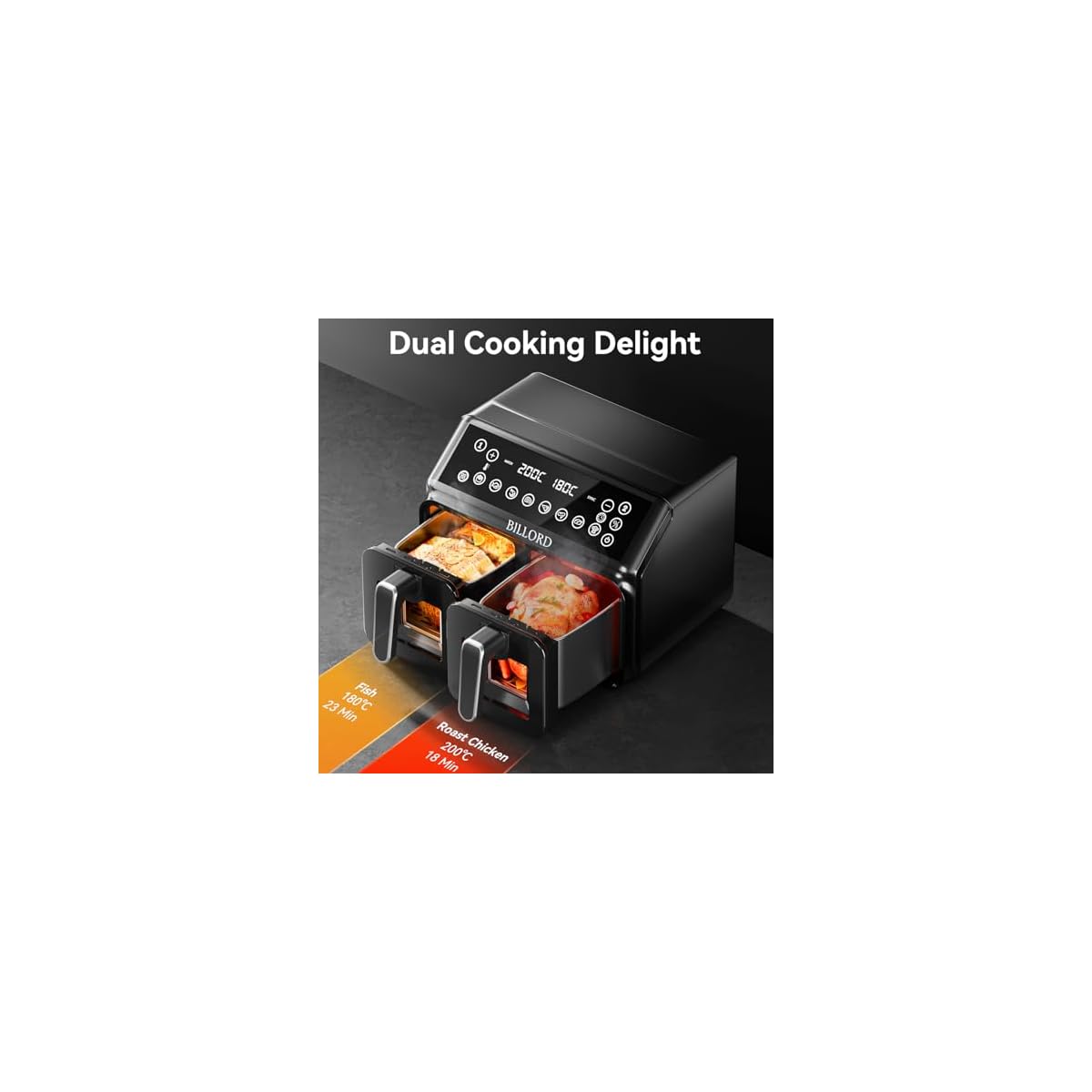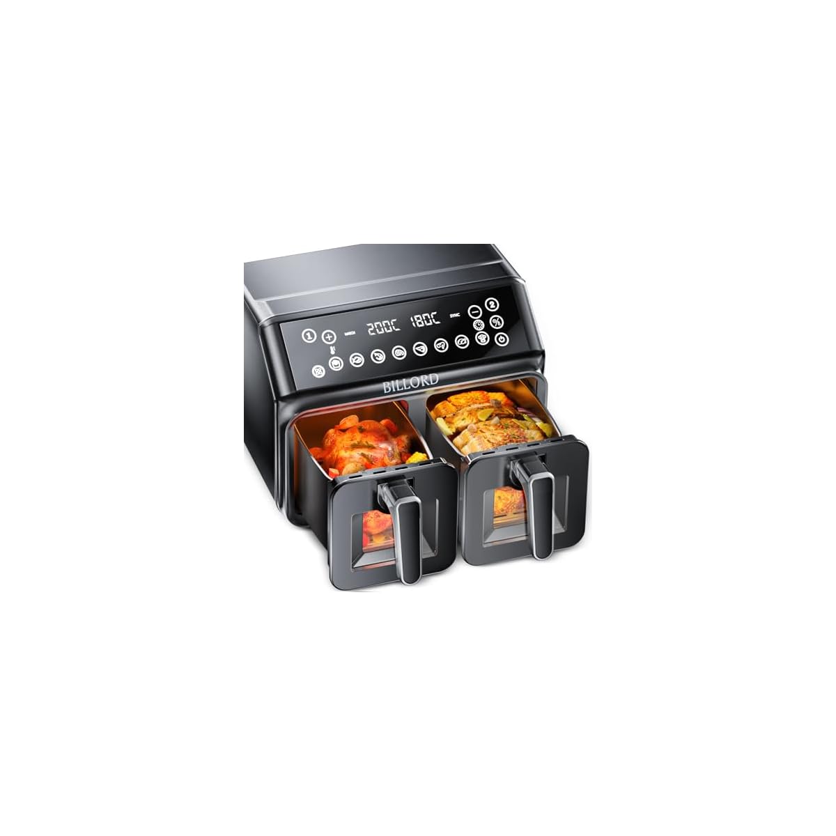 Billord Air Fryer for Home,Dual AirFryers Staineless Steel,Large Airfryer Oiless Healthy Multi-Cooker,Dual Zone Independent Cooking,Toast,Bake,Roast,Reheat,Airfryer with Glass Nonstick Baskets, 2x5L