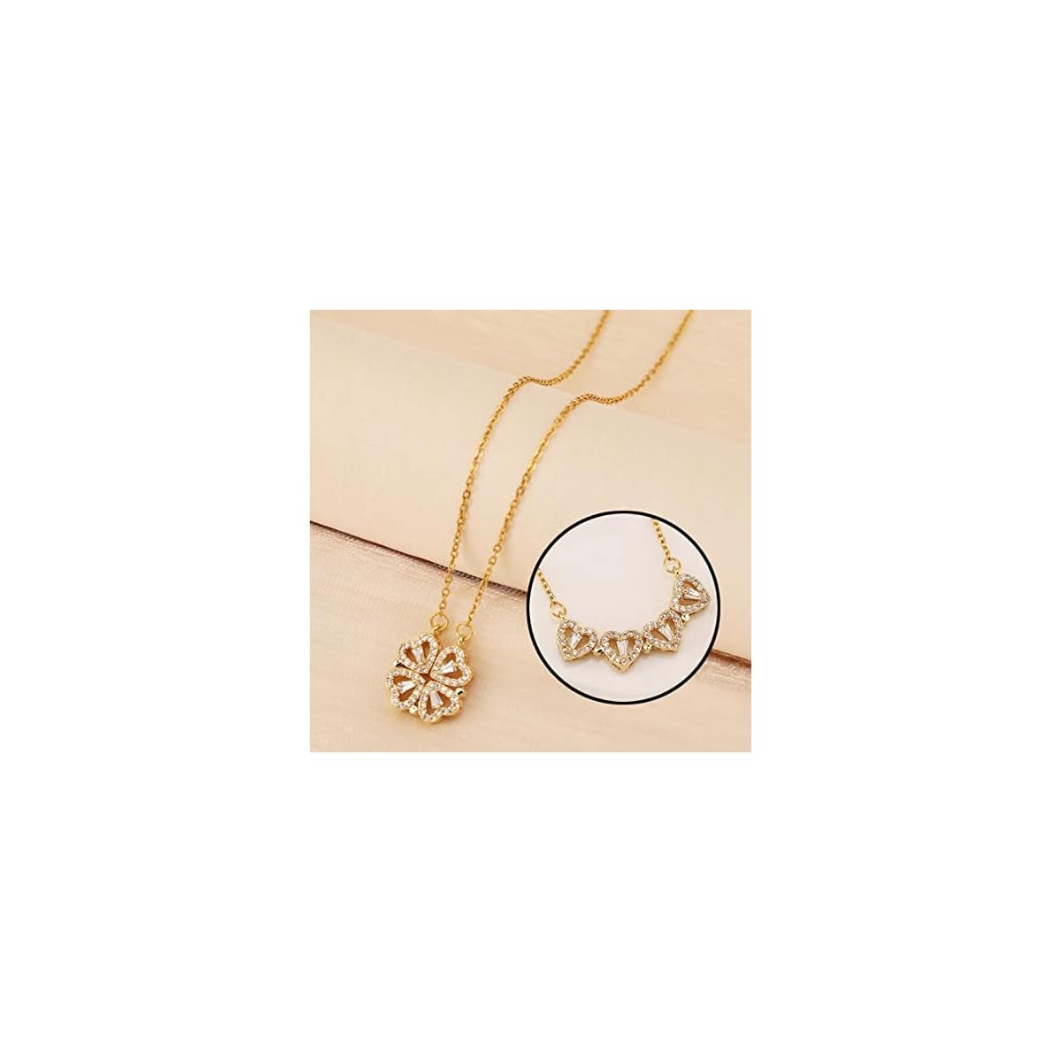 Brado Jewellery Multi Wearing Heart Necklace 4 Heart Magnetic Rose Gold Necklace Pendant Heart Toggle Necklace Diamond Women/Girls Accessories