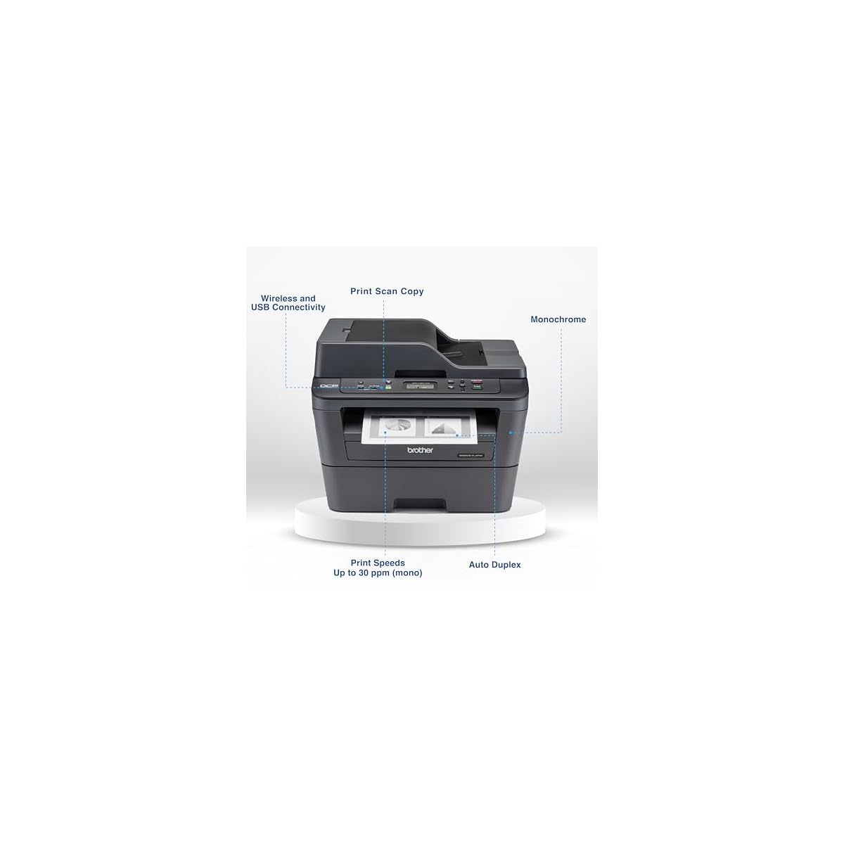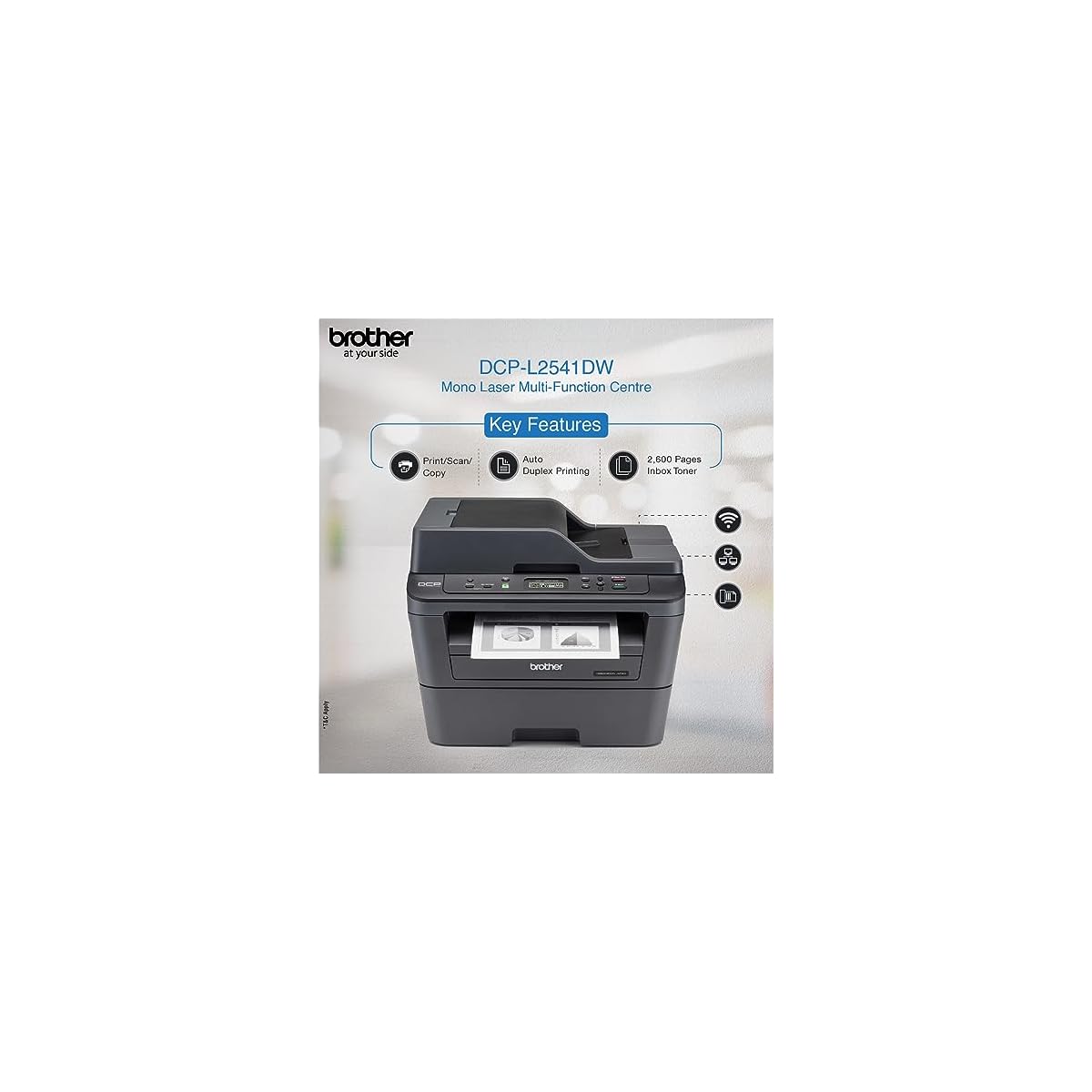 Brother DCP-L2541DW Auto Duplex Laser Printer With 30 PPM Print Speed, Multifunction Print Scan Copy, Automatic Document Feeder, 2 in 1 ID Copy Button, (WIFI, WIFI Direct, LAN, USB), Free Installation
