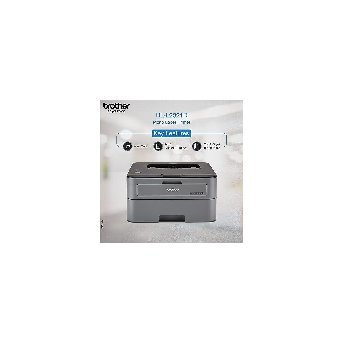 Special Features : 2 Sided Printing ; Ideal Usage [Recommended Uses of Product] : Home & Small Administrative center ; Included Elements : Power Cable, USB Cable, Installation CD, Inbox Toner TN-2365 (2600 pages) (must be installed)