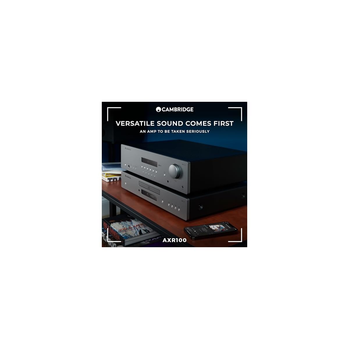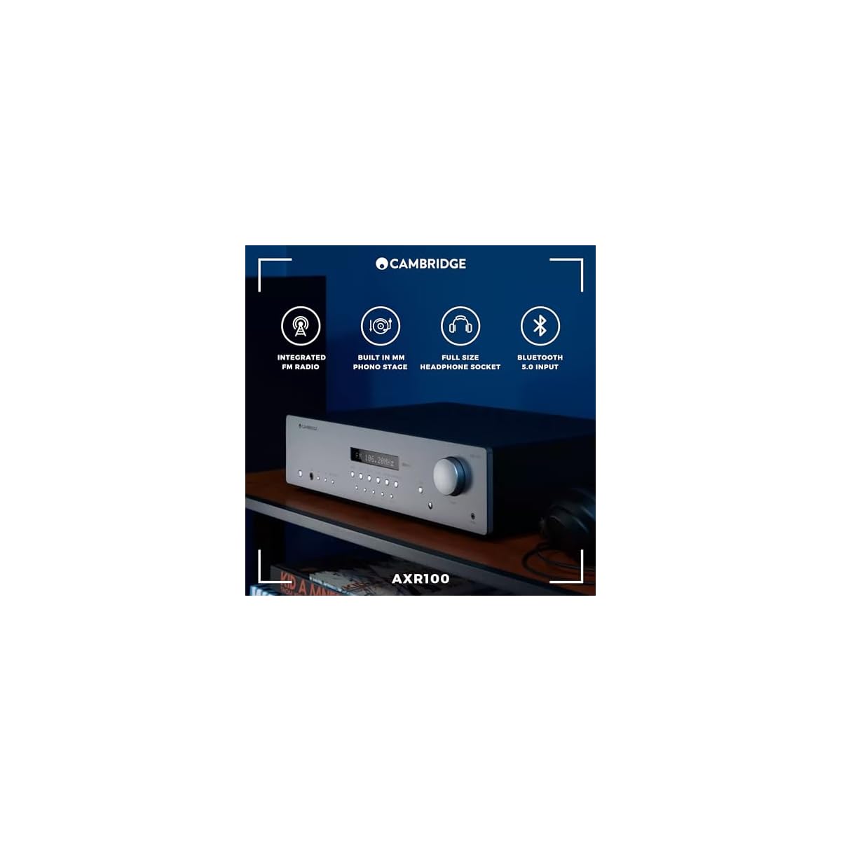 Cambridge Audio AXR100 FM/AM Stereo Receiver with Built-in DAC, Bluetooth, Built-in Phono Stage, 100W Per CH, Display Screen, Headphone Jack, Subwoofer Out, A/B Speaker Outputs, Tone Balance Control