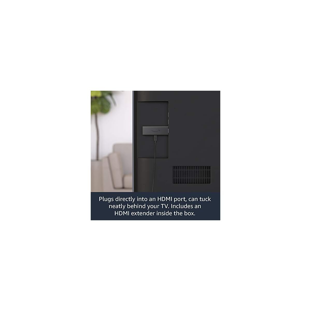 Easy to set up and stays hidden – plug in behind your TV into an HDMI port, turn on the TV and connect to the internet to set up.