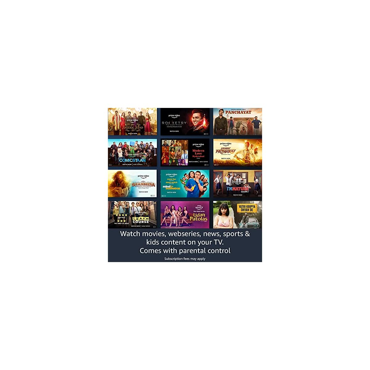 Watch movies, web series, news, sports & kids content on your TV. Comes with parental control. Subscription fees may apply.