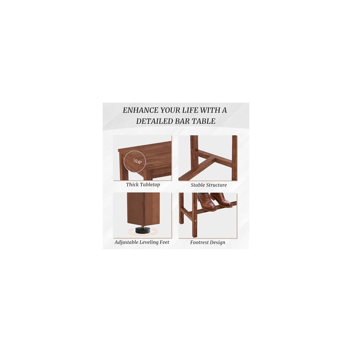 Sturdy and Secure: Our bar table features stable structure with reinforced crossbars for unbeatable stability and durability. Even on uneven surfaces, this bar table maintains its stability with four adjustable leveling feet. Capable of supporting up to 300 lbs, this bar table ensures uncompromised durability, allowing you to confidently place snacks, beverages, and more on its surface without worry.
