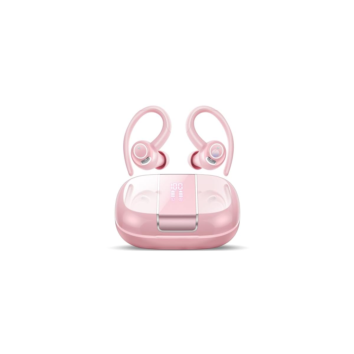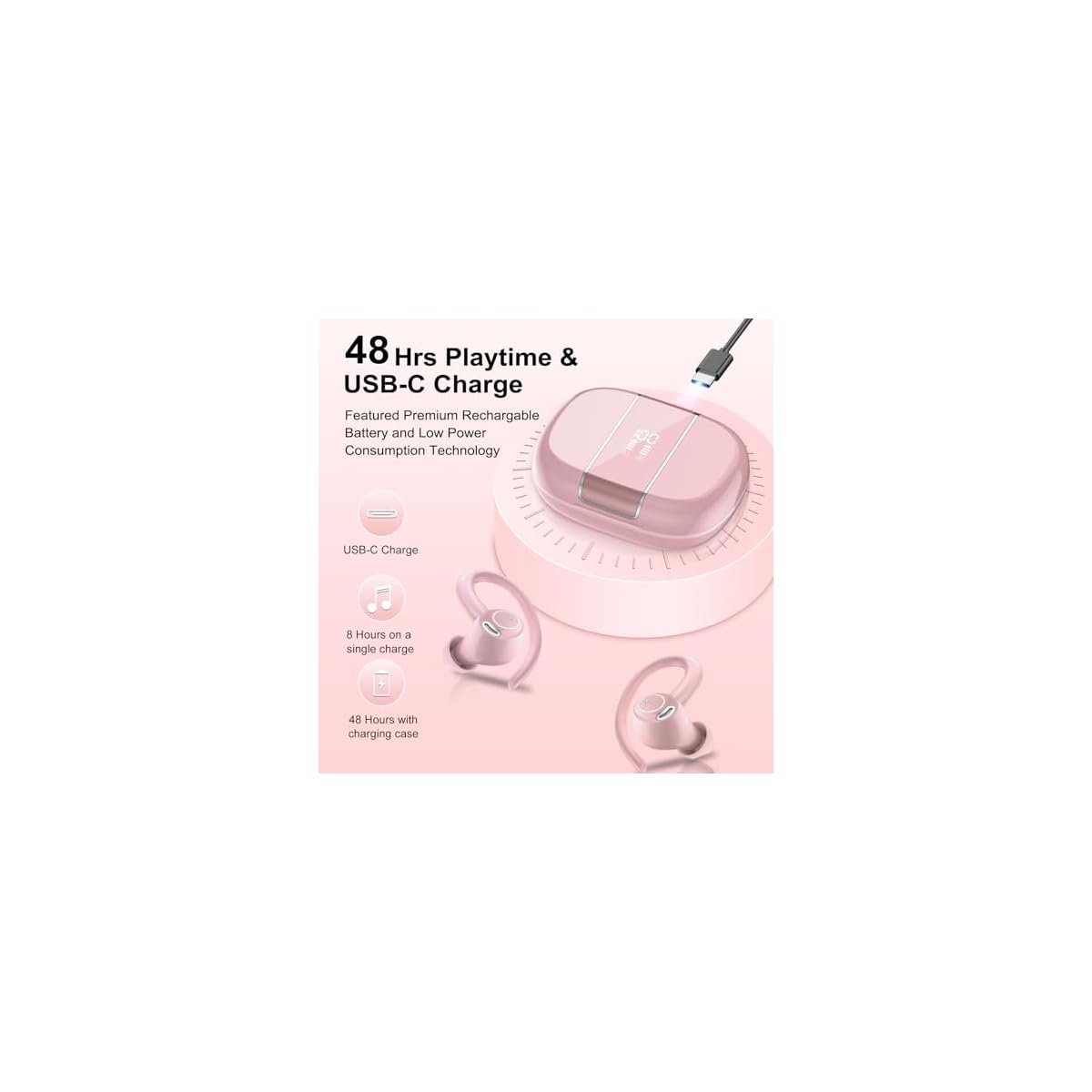 48 Hrs Playtime and Dual LED Display: The bluetooth headphones can last up to 8 hours on a single full charge, and use the 400mAh battery capacity charging case to recharge the over ear headphones an additional 4-5 times, so you can enjoy a total of 48 hrs of playtime. In addition, ear buds wireless bluetooth earbuds are also equipped with a smart LED display that can visually display the power level. The charging box supports USB-C charging and can be fully charged in 1.5 hours.