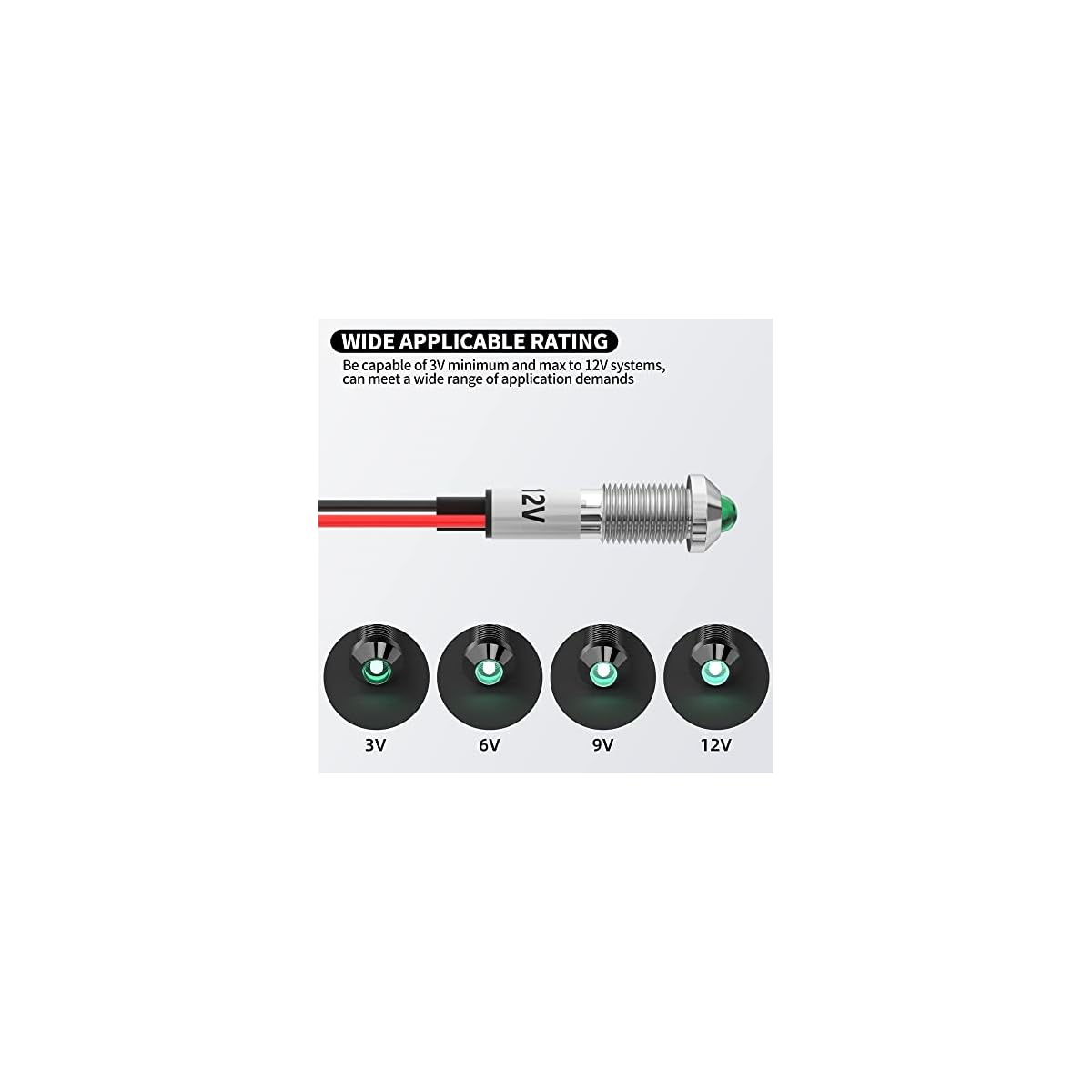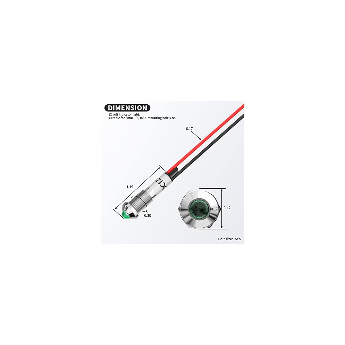 Easy to Install: The mounting hole size for this led indicator light 12v is 1/2″ (0.5″/12.5mm). In addition, this indicator light is snap-in design, which is easy to install and replace.