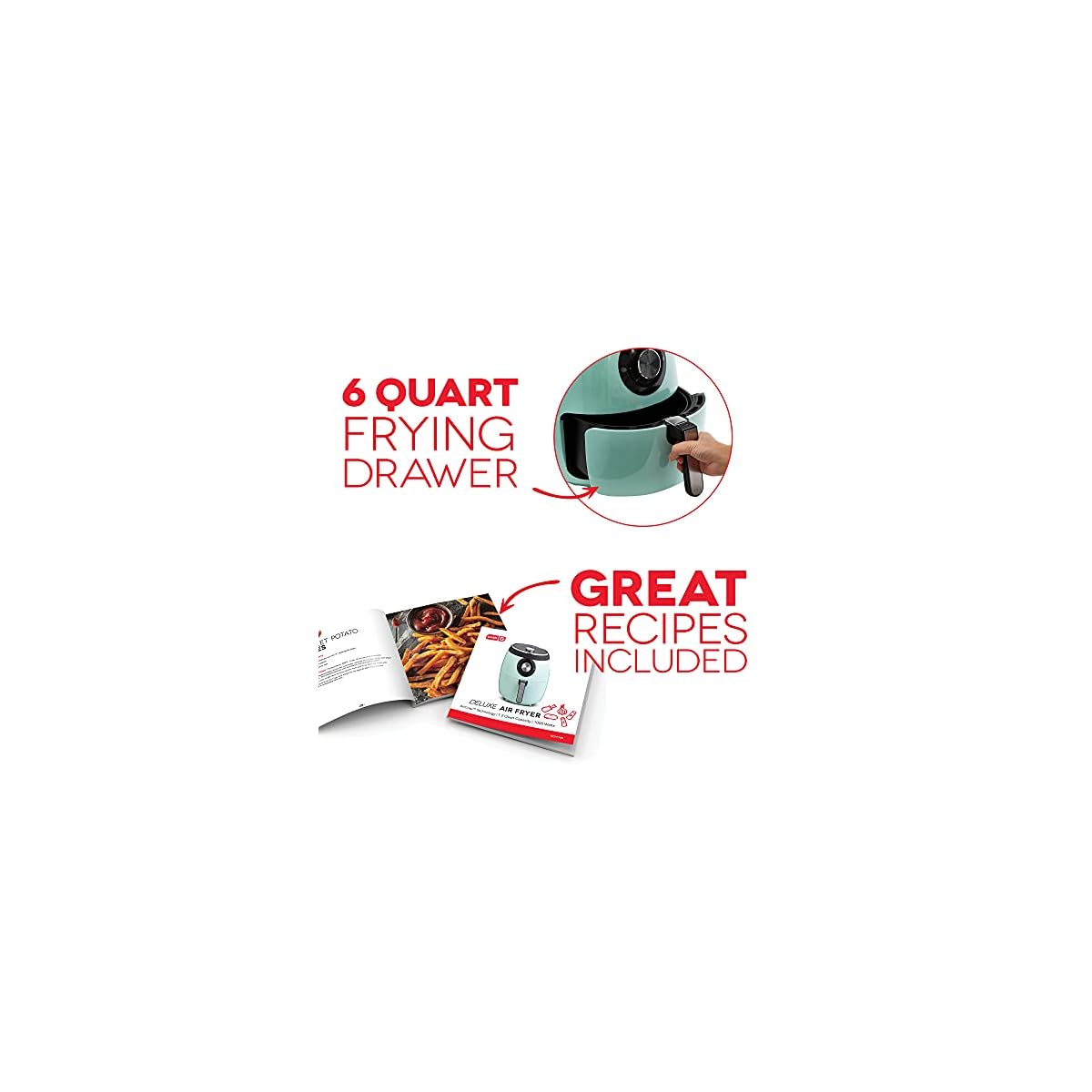 Dash DFAF455GBAQ01 Deluxe Electric Air Fryer + Oven Cooker with with Temperature Control, Non Stick Fry Basket, Recipe Guide + Auto Shut Off Feature, 6 qt, Aqua