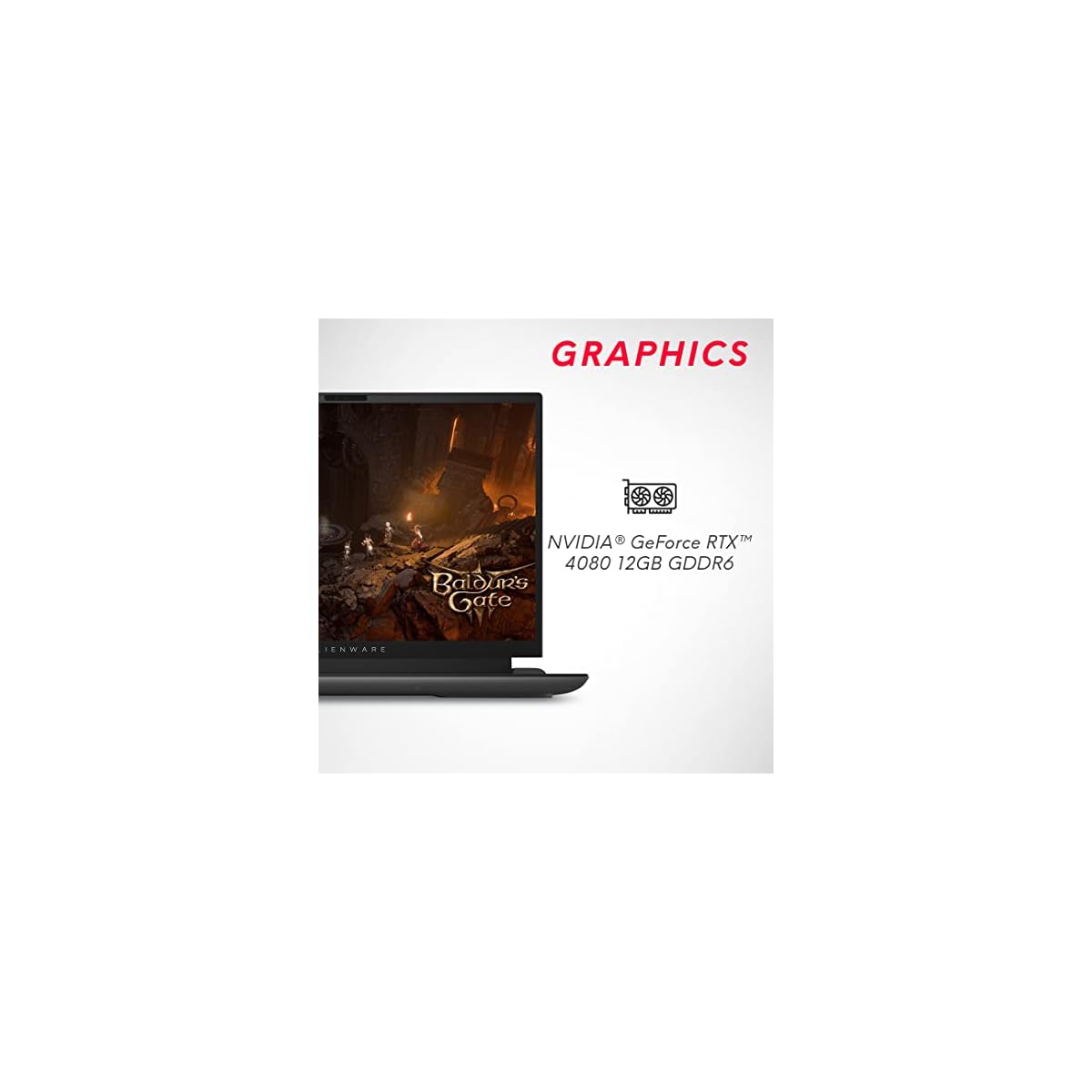 Graphics & Keyboard: NVIDIA GeForce RTX 4080 12GB GDDR6 & Alienware CherryMX ultra-low-profile mechanical Backlit Keyboard with per-key AlienFX // Display: 18.0″ QHD+ CompfortView Plus NVIDIA G-SYNC + DDS, 100% DCI-P3, FHD IR Camera 165Hz 3ms