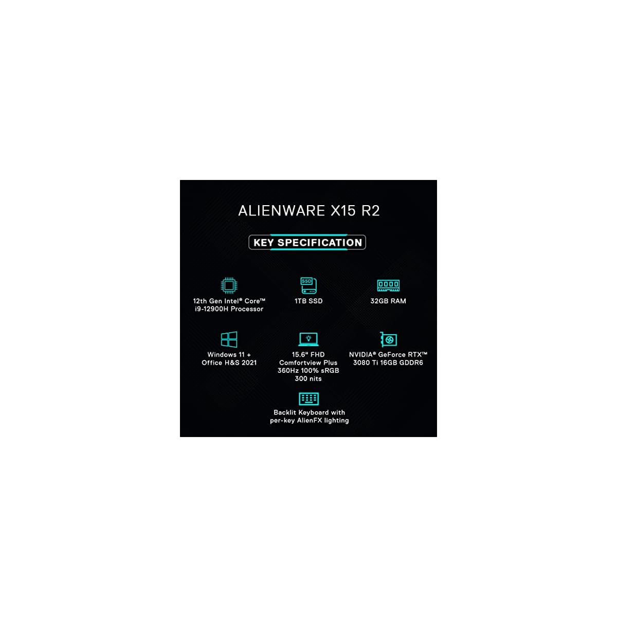 DELL New Alienware x15 R2 Gaming Laptop, Intel Core i9-12900H Processor/32GB LP DDR4/1TB SSD/NVIDIA RTX 3080 Ti (16GB GDDR6)/15.6″ (39.62cm) FHD 360Hz 300nits/AlienFX KB/Win 11 + MSO’21/2.34kg