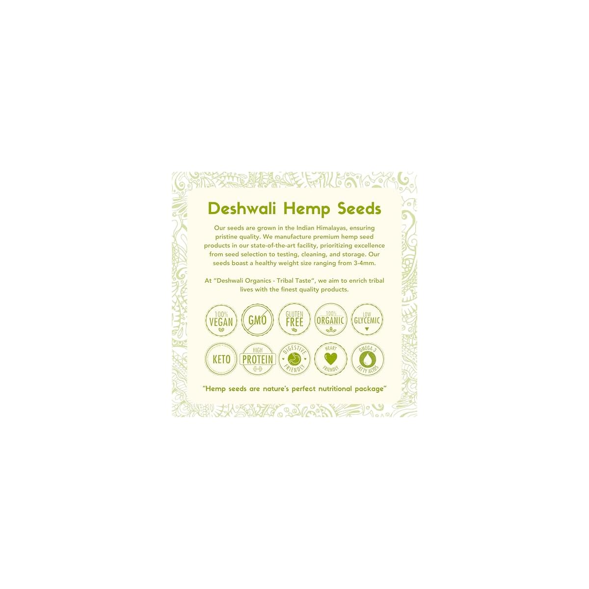 Sustainably Grown: Deshwali Hemp Seeds come from Indian Himalayan-grown industrial hemp, which requires fewer pesticides and herbicides than conventional crops. Known for its environmental sustainability, hemp cultivation minimizes water usage and resource consumption.