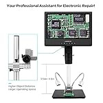 【Your Professional Assistant for Electronic Repair–Lens L】 LM249M digital microscope is a professional welding microscope. Lens L can reach 60X and the object distance range reaches 3.54in-11.8in. the 0402 SMD resistance are clearly available. The 13in upgraded metal stand can not only be adjusted back and forth, up and down, but also the beam can be retracted back and forth, ensuring the engineer’s working space and providing the best operating experience