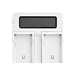 Dual battery charger: This super compact charger gives you the benefit to charge 2 batteries at the same time with two easily interchangeable battery plates.
