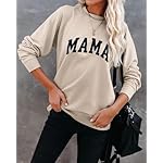 Dressmine Womens Mama Sweatshirt Casual Long Sleeve Crew Neck Pullover Shirts Fall Outfits 2024 Clothes, Apricot, Large