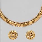 Fashion Frill Traditional Gold Plated Necklace Set With Earrings For Womens Jewellery Collection