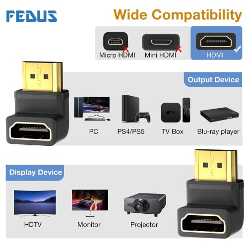 FEDUS Gold Plated HDMI Male to Female Converter Connector Adapter 90 Degree L Shape for HDTV, Plasma TV, LED, LCD Etc – Black