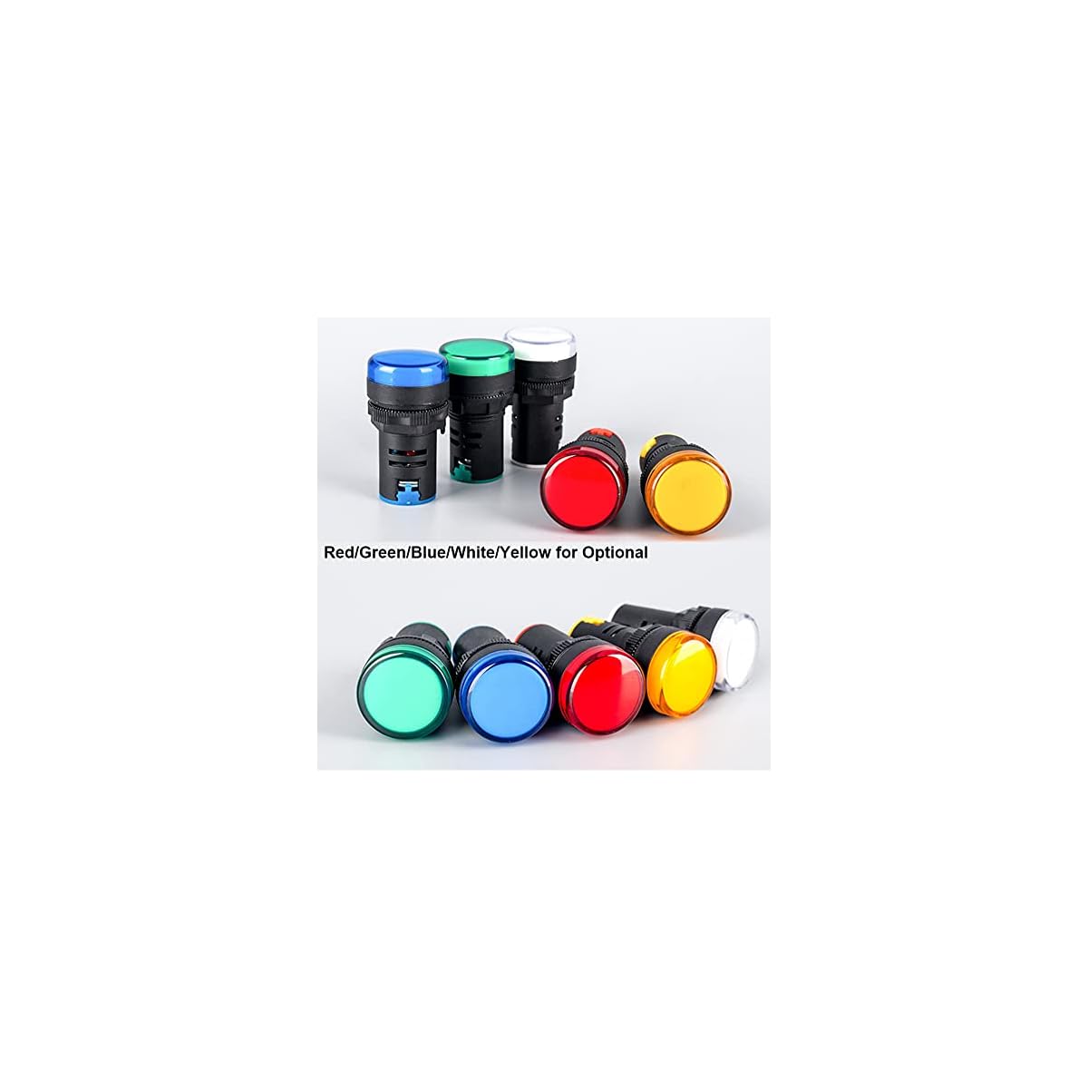 Package Contains: 12pcs LED Indicator Light, 4 colors: red, yellow, blue and green. Each color 3pcs, Model No. : AD16-22D/S.