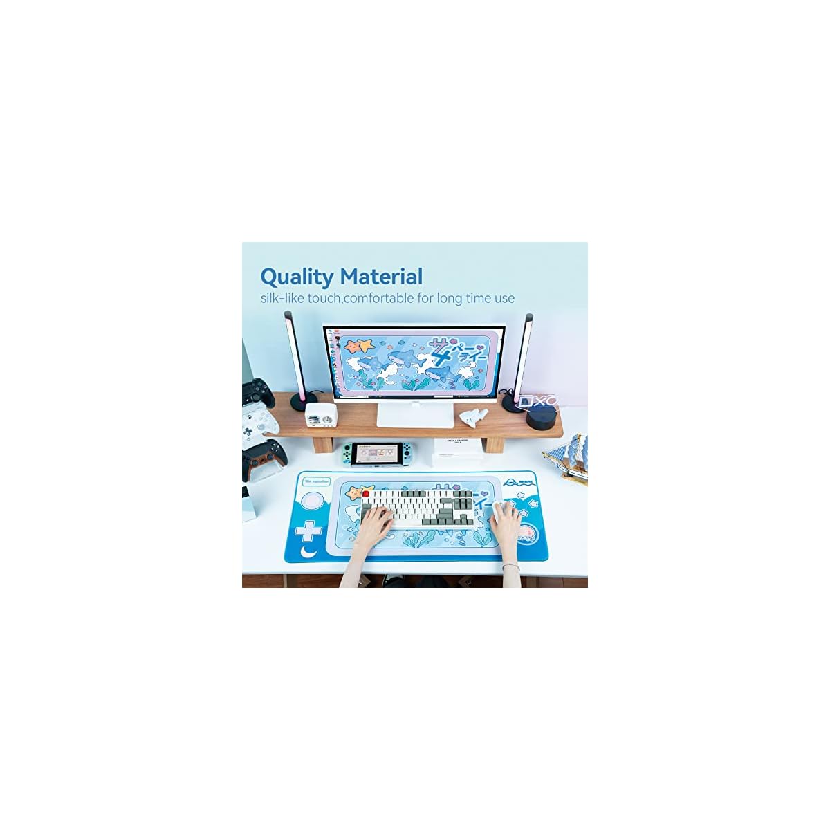 GeekShare Cute Shark Party Mouse Pad – Large Non-Slip Rubber Base Desk Mat for Keyboard and Mouse, Perfect for Gaming, Writing, or Home Office Work